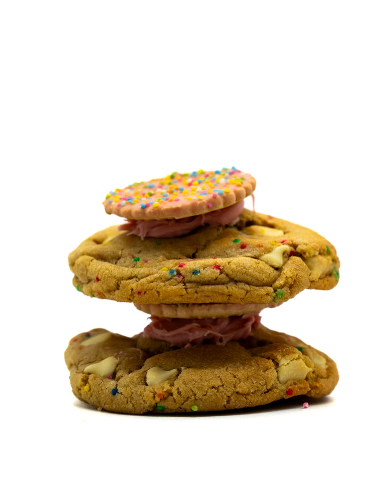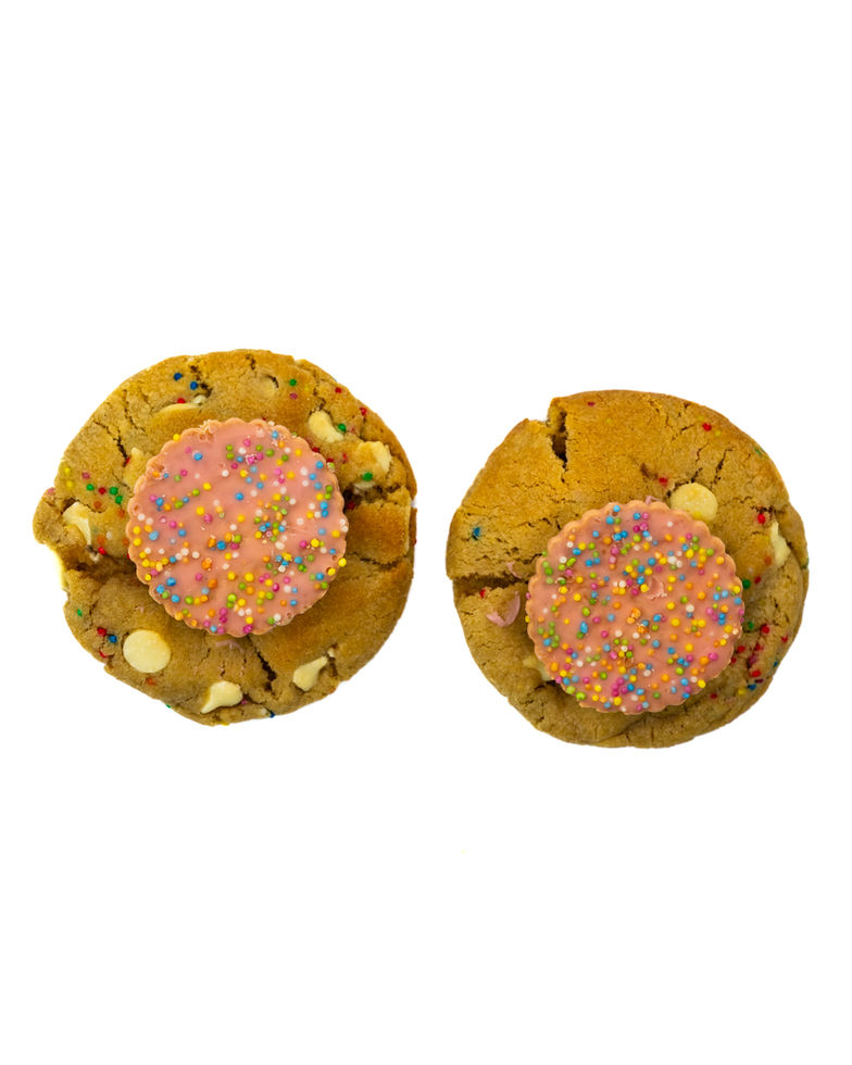 Indulge in our Funfetti cookies at Crumble & Sprinkle, a local business crafting exquisite confections. Full of sprinkles, white chocolate, and strawberry praline, these cookies offer a flavorful experience. Perfect for any occasion. Enjoy the delightful combination of sprinkles, white chocolate, and strawberry praline.